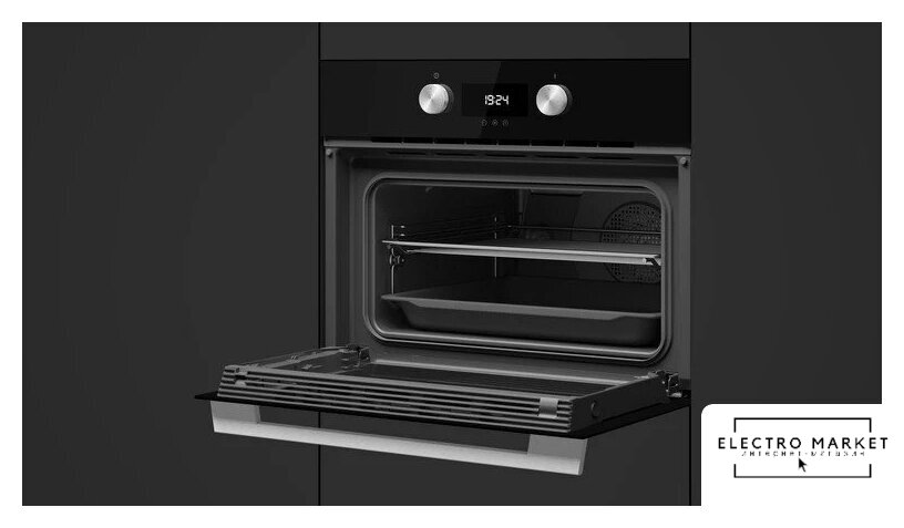 электрический с конвекцией, объем 71 л, 13 режимов, очистка каталитическая + паровая, направляющие проволочные
