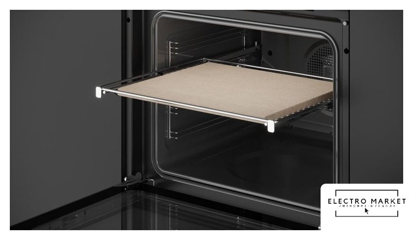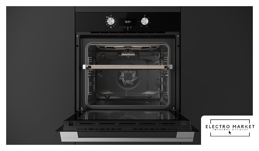 электрический с конвекцией, объем 71 л, 9 режимов, очистка ручная + паровая, 2 стекла в дверце, направляющие проволочные