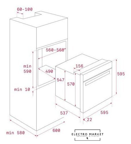 электрический с конвекцией, объем 71 л, 8 режимов, очистка пиролитическая, 4 стекла в дверце, направляющие проволочные