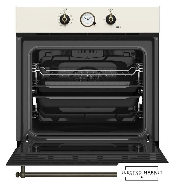 электрический с конвекцией, микроволны, объем 72 л, 17 режимов, 10 автопрограмм, очистка паровая, 3 стекла в дверце, направляющие проволочные