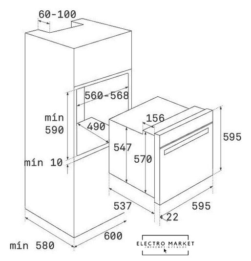 электрический с конвекцией, приготовление на пару, объем 76 л, 10 режимов, автопрограммы, очистка каталитическая + паровая, 2 стекла в дверце, направляющие проволочные
