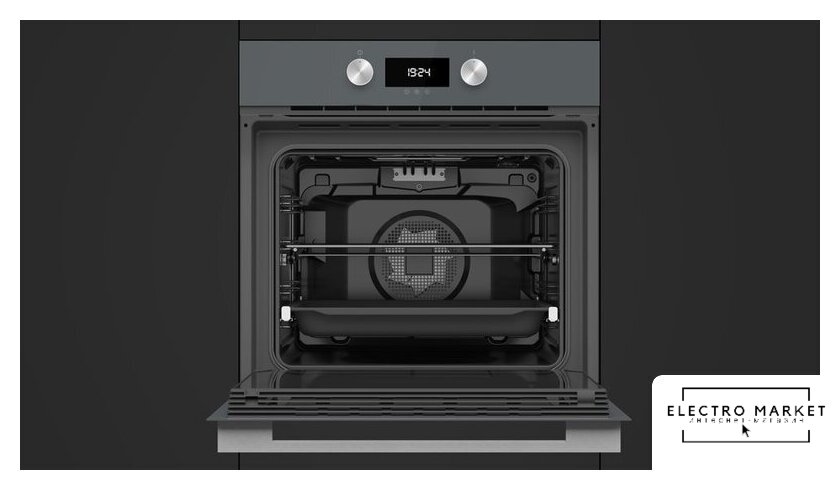 электрический с конвекцией, объем 76 л, 13 режимов, автопрограммы, очистка каталитическая + паровая, 2 стекла в дверце, направляющие проволочные + телескопические (1 уровень)
