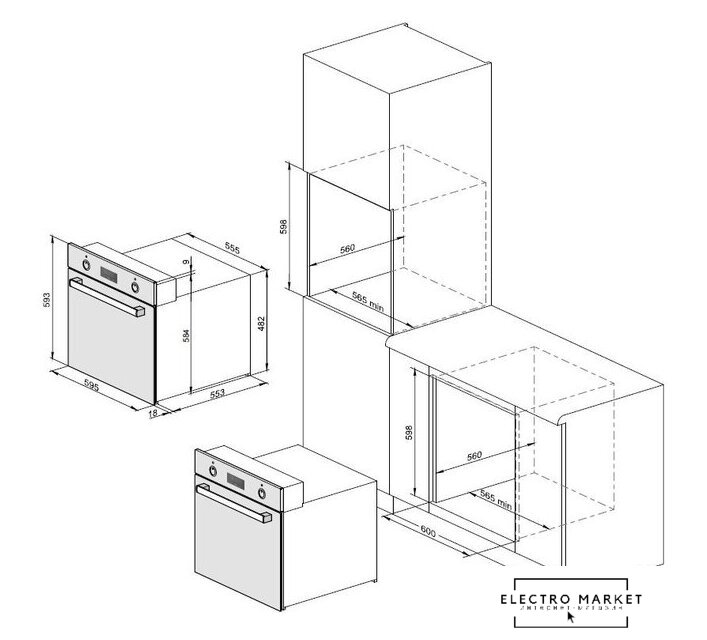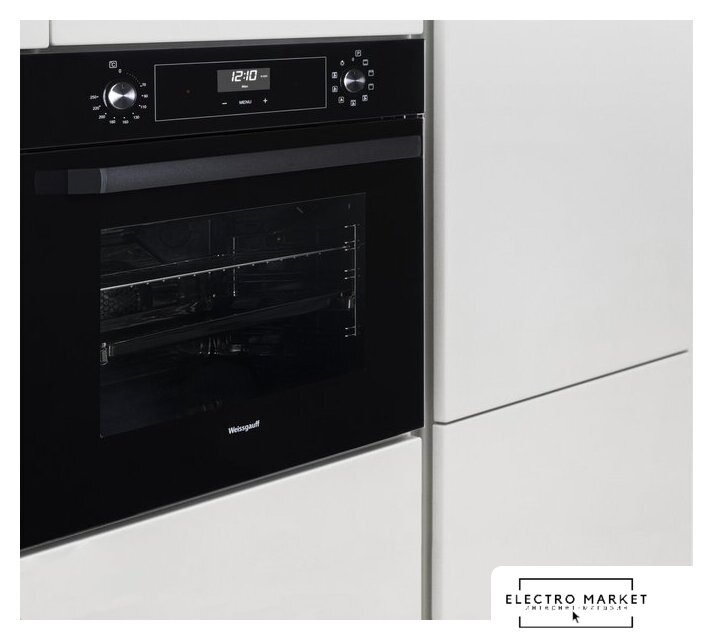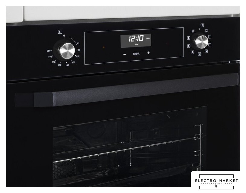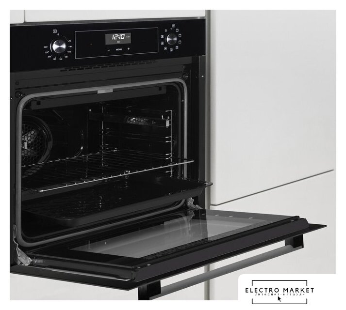 электрический с конвекцией, объем 68 л, утапливаемые переключатели, 9 режимов, очистка ручная, 3 стекла в дверце, направляющие проволочные