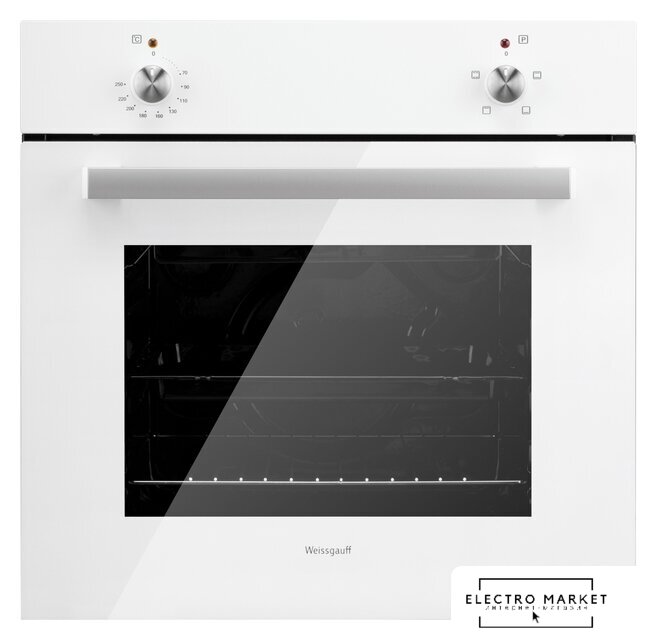 электрический с конвекцией, объем 72 л, 4 режима, очистка паровая, 2 стекла в дверце, направляющие рельефные