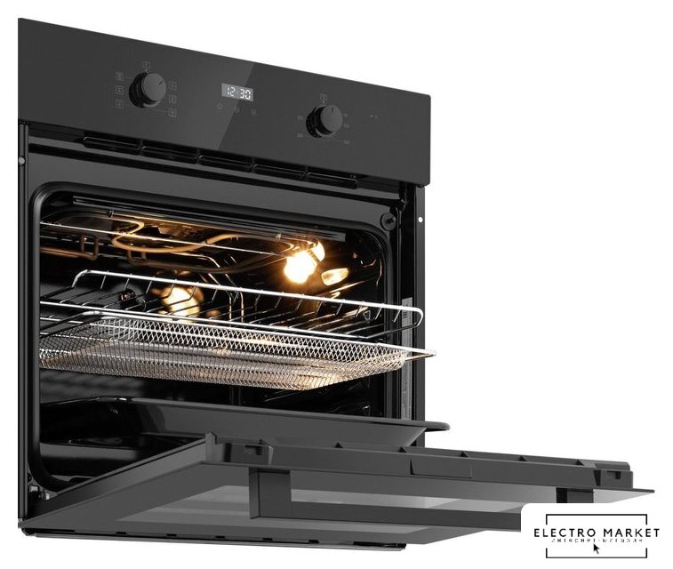 электрический с конвекцией, объем 68 л, 6 режимов, очистка ручная, 2 стекла в дверце, направляющие проволочные