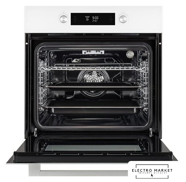 электрический с конвекцией, объем 61 л, 9 режимов, очистка ручная, 3 стекла в дверце, направляющие проволочные