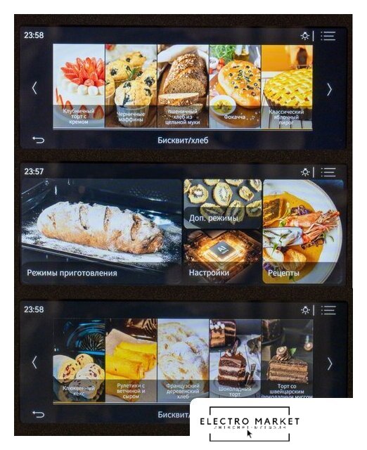 | Режимы работы | нижний нагрев, верхний нагрев, двухсторонний нагрев, большой гриль, вентиляционный нагрев, гриль + конвекция, двухсторонний нагрев + конвекция, размораживание, поддержание температуры (подогрев), подготовка теста |