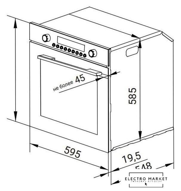 электрический с конвекцией, объем 50 л, утапливаемые переключатели, 6 режимов, очистка паровая, направляющие проволочные + телескопические (1 уровень)