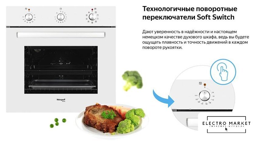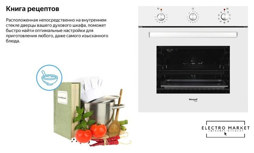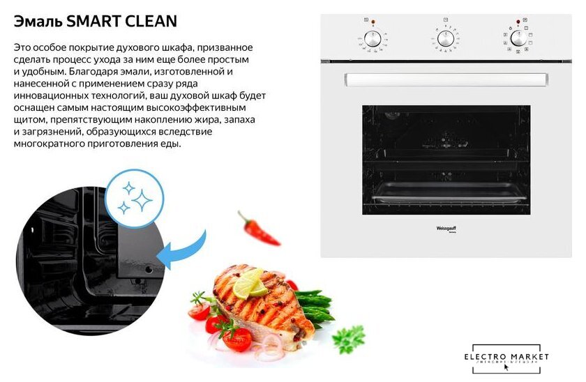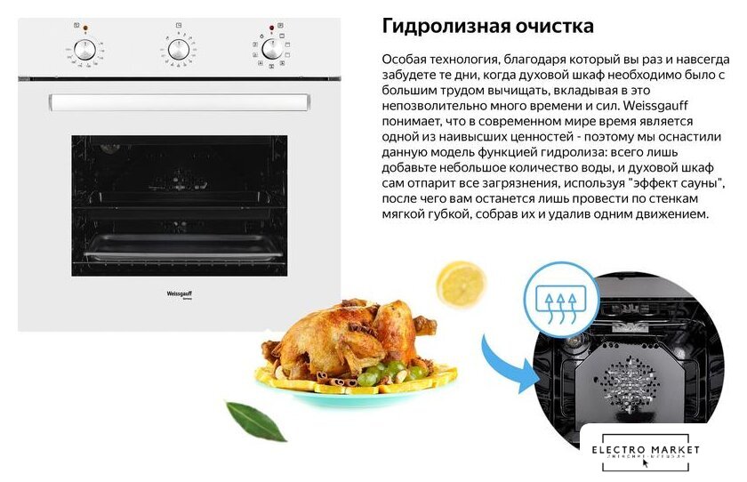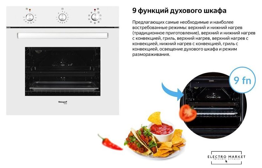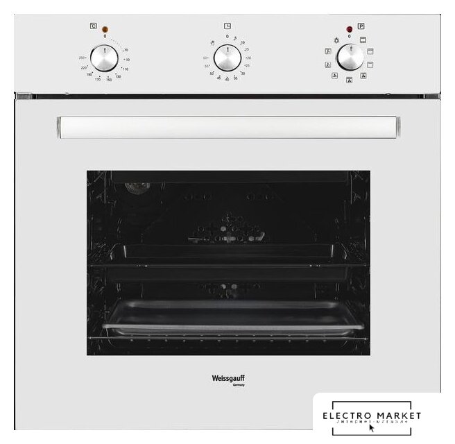 электрический с конвекцией, объем 60 л, 6 режимов, очистка ручная, 2 стекла в дверце, направляющие проволочные