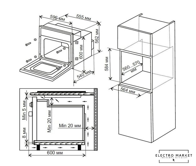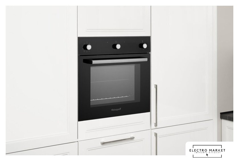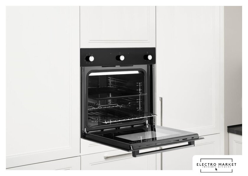 электрический с конвекцией, объем 53 л, утапливаемые переключатели, 6 режимов, очистка паровая, направляющие проволочные + телескопические (1 уровень)