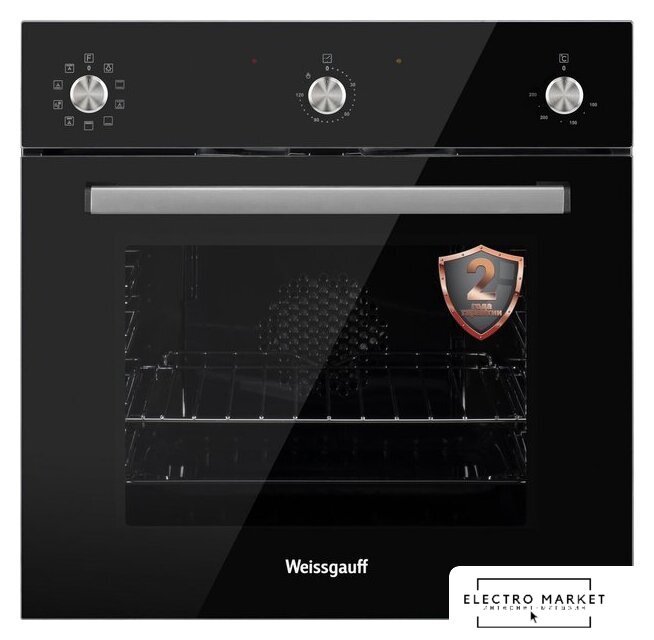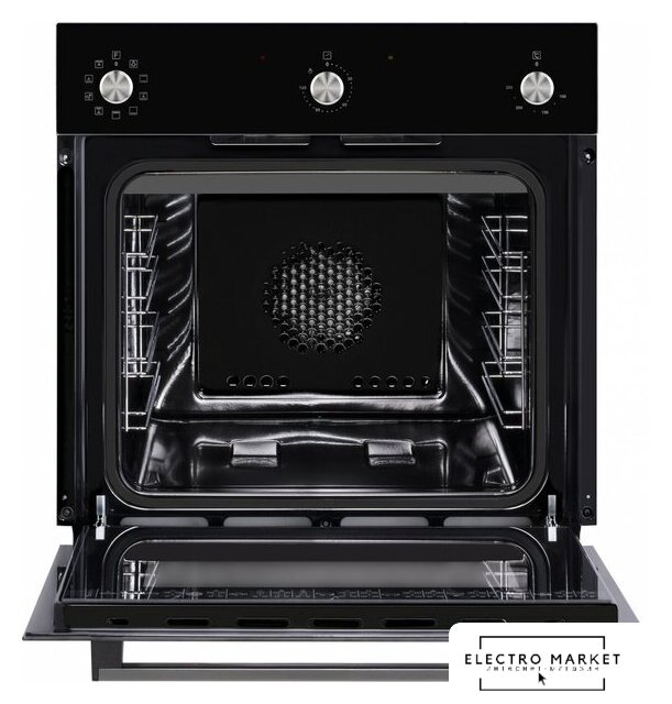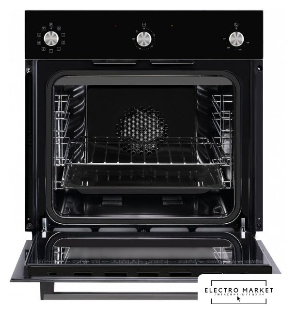 электрический с конвекцией, объем 72 л, утапливаемые переключатели, 7 режимов, очистка ручная, 2 стекла в дверце, направляющие проволочные