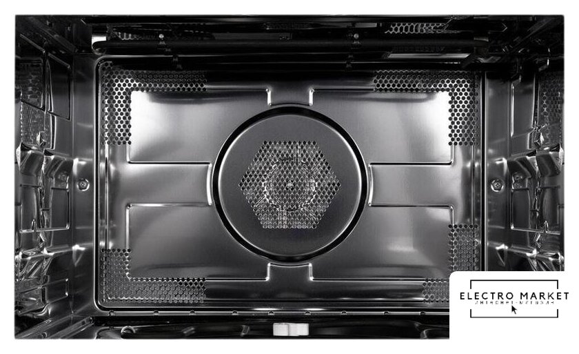 электрический с конвекцией, объем 76 л, 11 режимов, автопрограммы, очистка каталитическая + паровая, 2 стекла в дверце, направляющие проволочные
