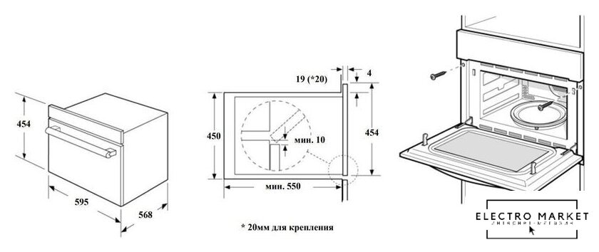 электрический с конвекцией, микроволны, объем 44 л, 7 режимов, очистка ручная