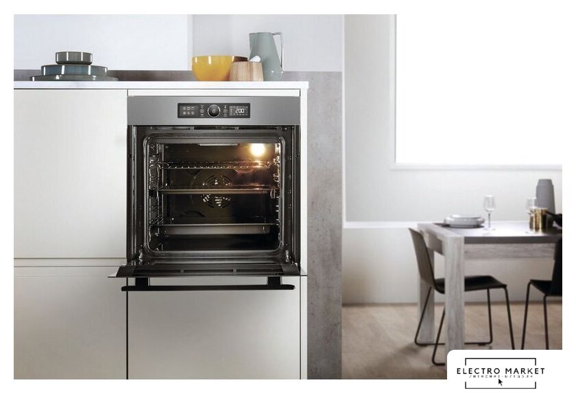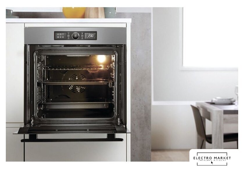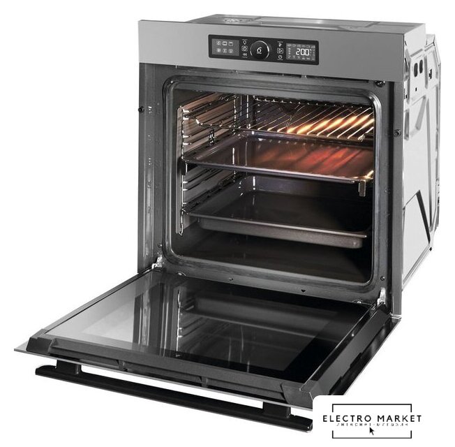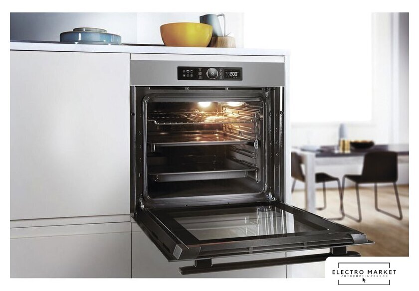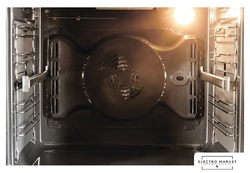 электрический с конвекцией, объем 76 л, 8 режимов, очистка паровая, 2 стекла в дверце, направляющие проволочные + телескопические (1 уровень)