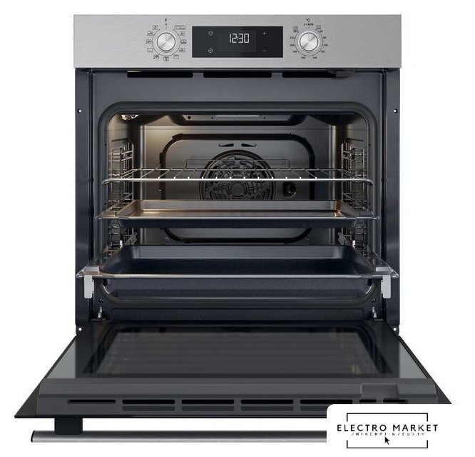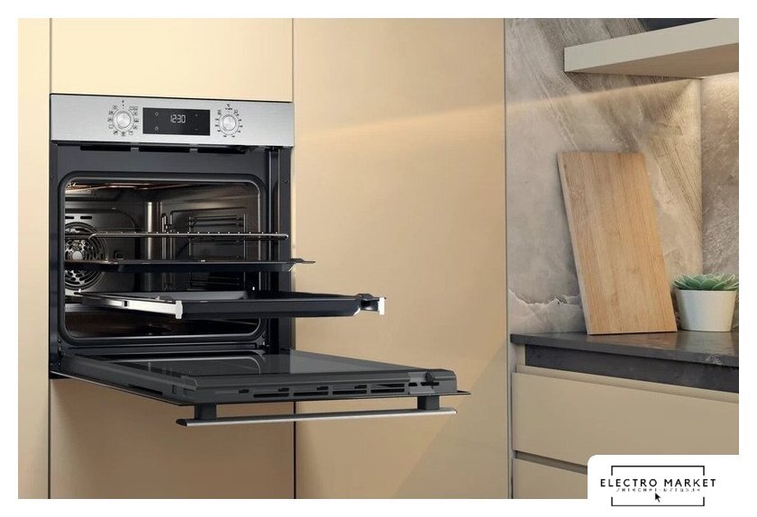 электрический с конвекцией, объем 51 л, утапливаемые переключатели, 7 режимов, очистка ручная, направляющие проволочные