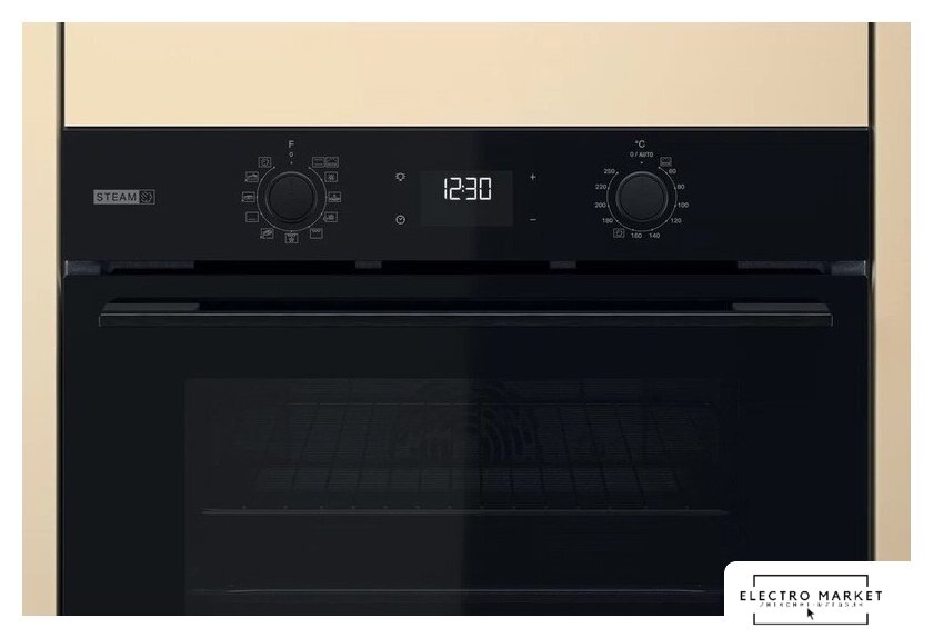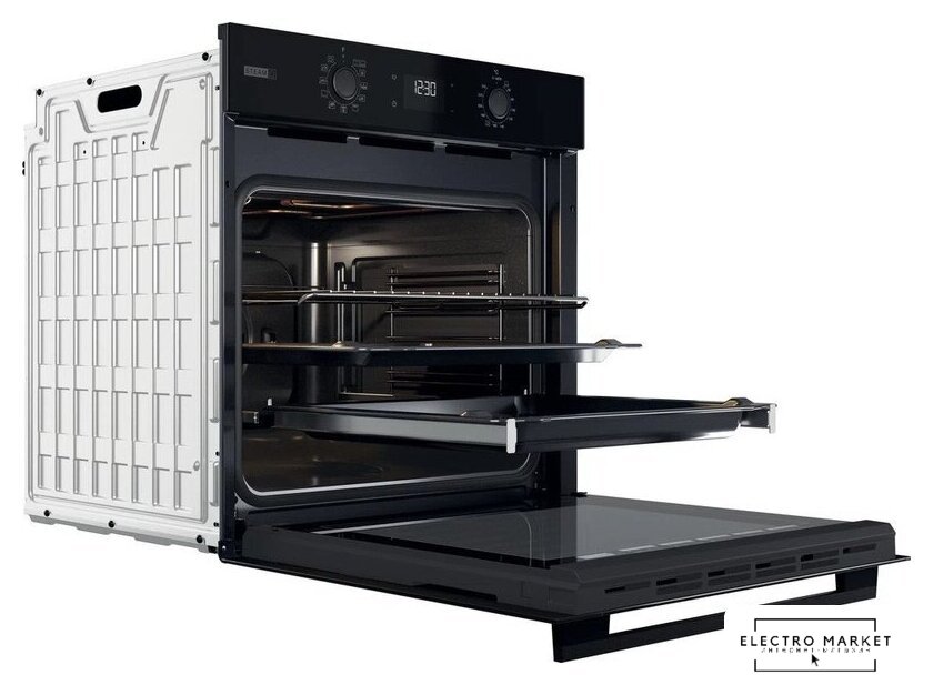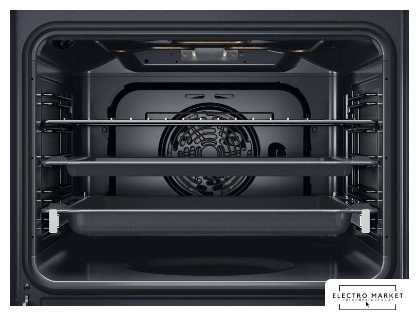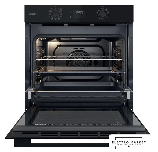 электрический с конвекцией, объем 76 л, 11 режимов, автопрограммы, очистка каталитическая + паровая, 2 стекла в дверце, направляющие проволочные
