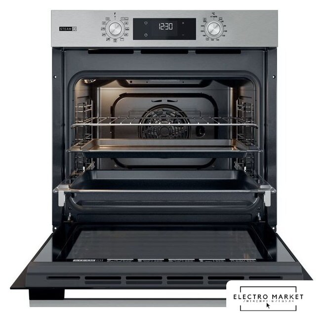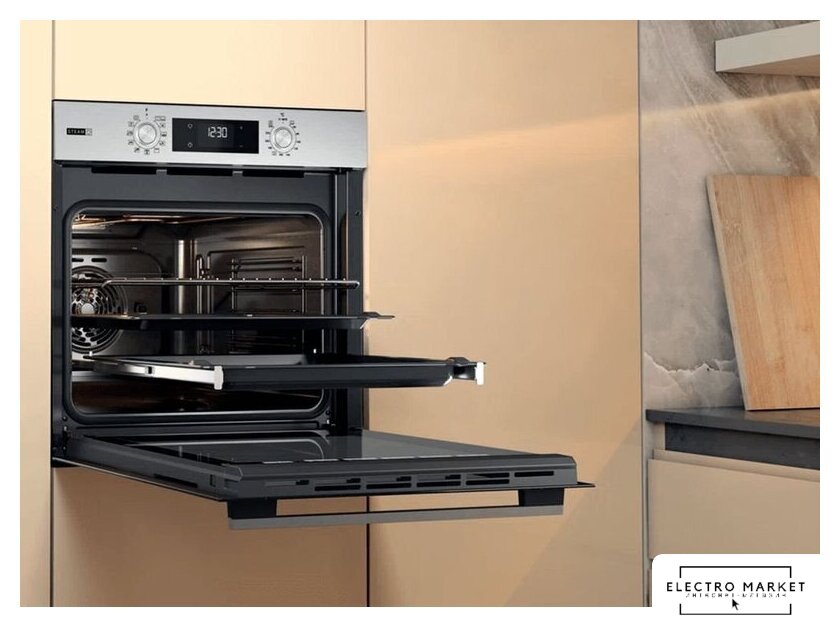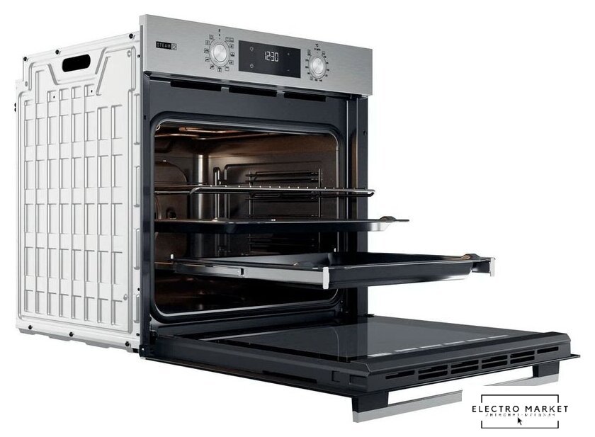 электрический с конвекцией, приготовление на пару, объем 77 л, утапливаемые переключатели, 12 режимов, очистка каталитическая, 2 стекла в дверце, направляющие проволочные + телескопические (1 уровень)