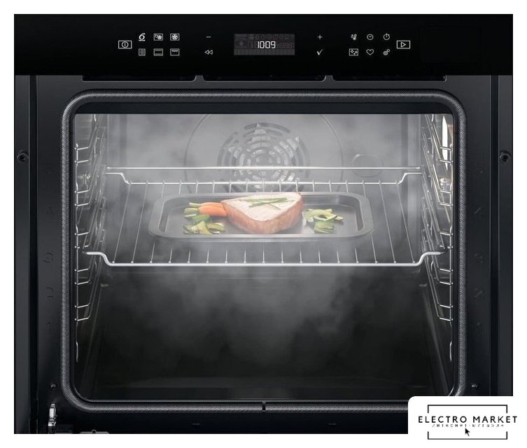 электрический с конвекцией, приготовление на пару, объем 71 л, 8 режимов, автопрограммы, очистка пиролитическая + паровая, направляющие проволочные + телескопические (1 уровень)