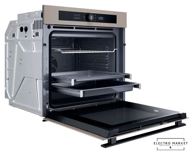 электрический с конвекцией, объем 71 л, 5 режимов, автопрограммы, очистка пиролитическая + паровая, 4 стекла в дверце, направляющие проволочные