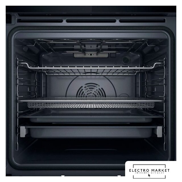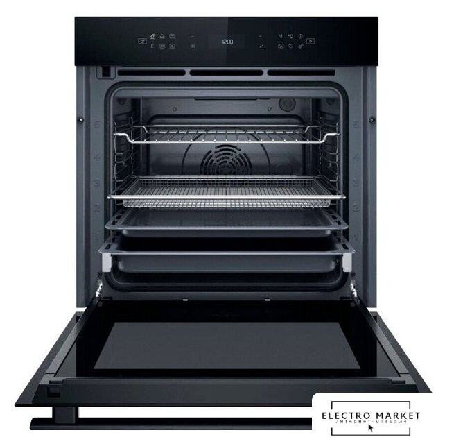 электрический с конвекцией, приготовление на пару, объем 72 л, утапливаемые переключатели, 9 режимов, очистка каталитическая, 2 стекла в дверце, направляющие проволочные + телескопические (1 уровень), термощуп