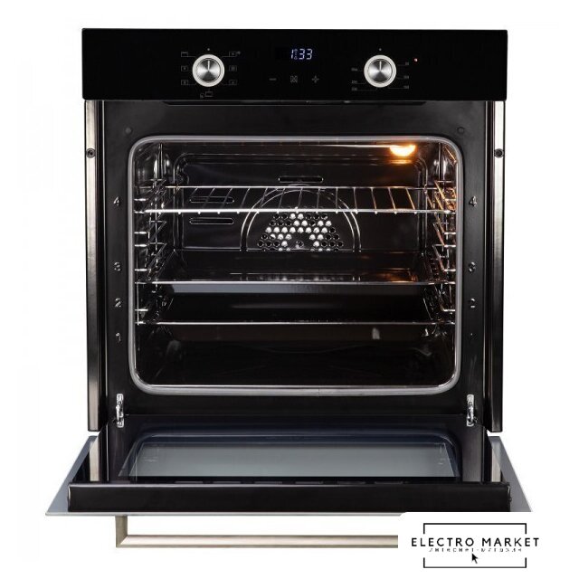электрический с конвекцией, объем 64 л, 9 режимов, очистка ручная, 3 стекла в дверце, направляющие проволочные