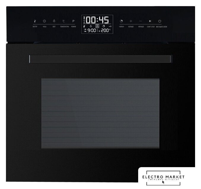 электрический с конвекцией, объем 75 л, 15 режимов, очистка ручная, 3 стекла в дверце, направляющие проволочные, термощуп