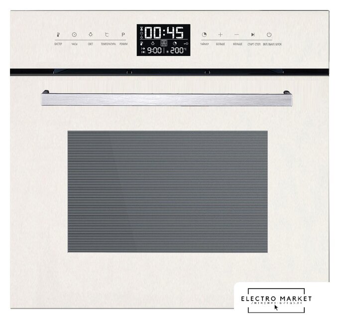 электрический с конвекцией, объем 69 л, утапливаемые переключатели, 7 режимов, очистка каталитическая + паровая, 3 стекла в дверце, направляющие проволочные + телескопические (1 уровень)