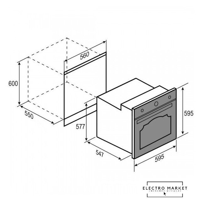 электрический с конвекцией, объем 73 л, 10 режимов, очистка ручная, 3 стекла в дверце, направляющие проволочные + телескопические (1 уровень)
