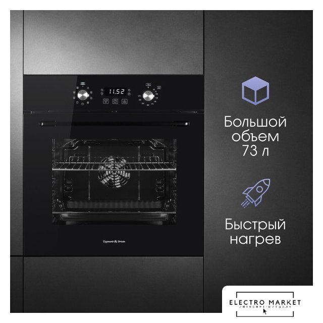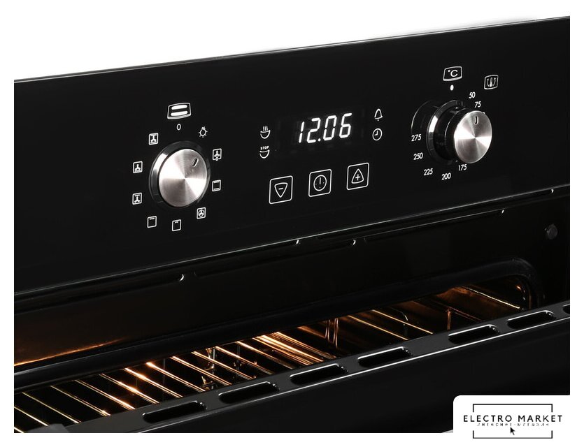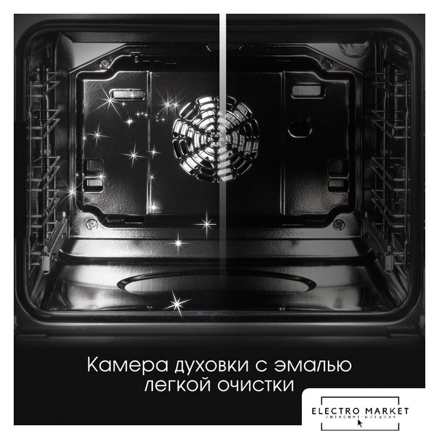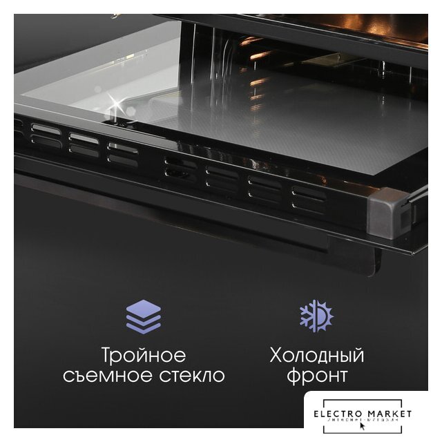 электрический с конвекцией, объем 76 л, 9 режимов, очистка ручная, 3 стекла в дверце, направляющие проволочные