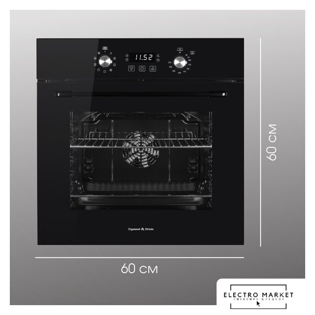 электрический с конвекцией, объем 52 л, 10 режимов, очистка ручная, 2 стекла в дверце, направляющие проволочные + телескопические (1 уровень)