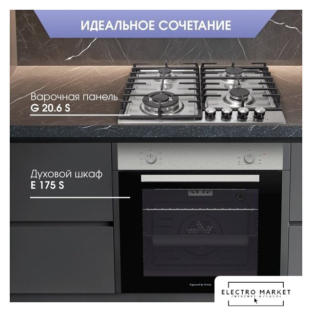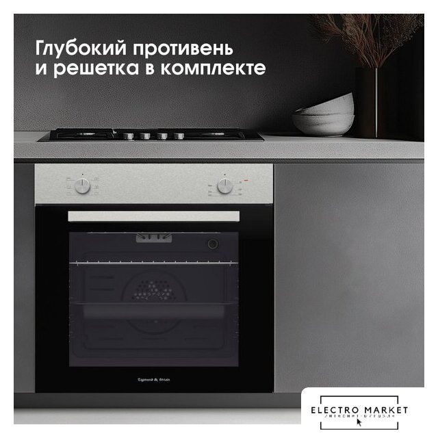 электрический с конвекцией, объем 62 л, 8 режимов, очистка ручная/паровая, энергопотребление A