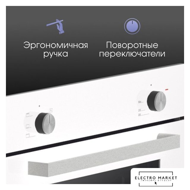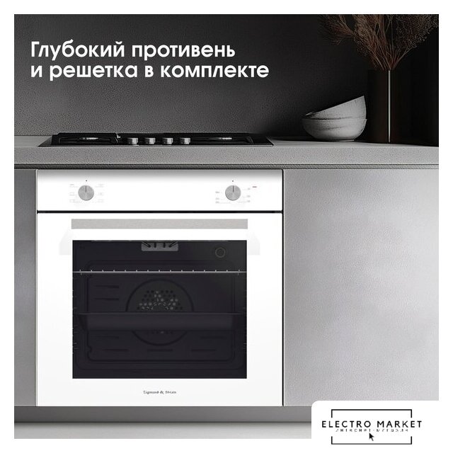 электрический с конвекцией, объем 62 л, 8 режимов, очистка ручная/паровая, энергопотребление A