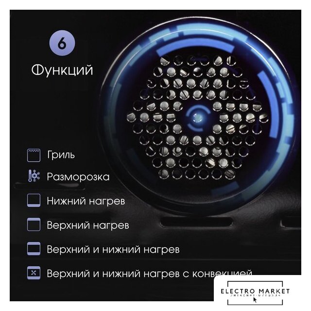 электрический с конвекцией, объем 66 л, 4 режима, очистка ручная, энергопотребление A