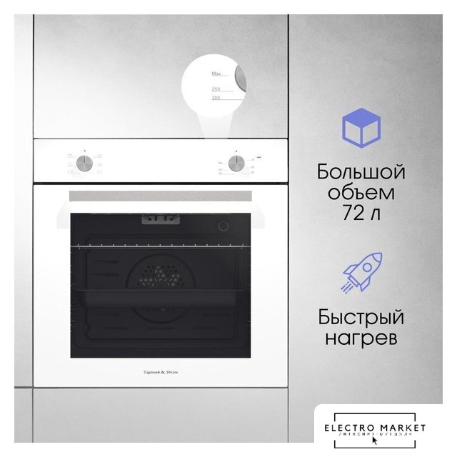 электрический с конвекцией, объем 73 л, 3 режима, очистка ручная, энергопотребление A