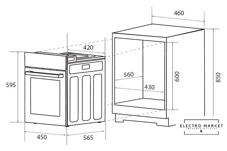 электрический с конвекцией, объем 80 л, утапливаемые переключатели, 5 режимов, очистка паровая, 2 стекла в дверце, направляющие проволочные