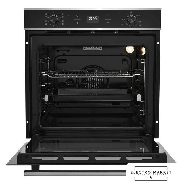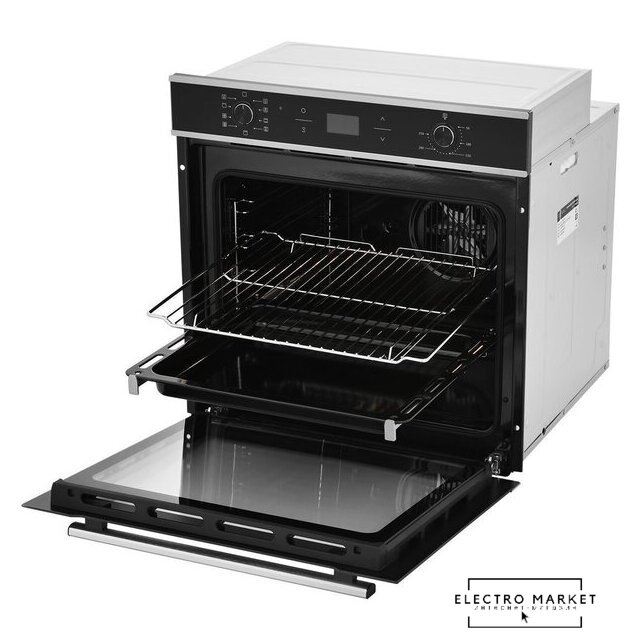 электрический с конвекцией, объем 76 л, 16 режимов, автопрограммы, очистка паровая, 3 стекла в дверце, направляющие проволочные + телескопические (1 уровень)