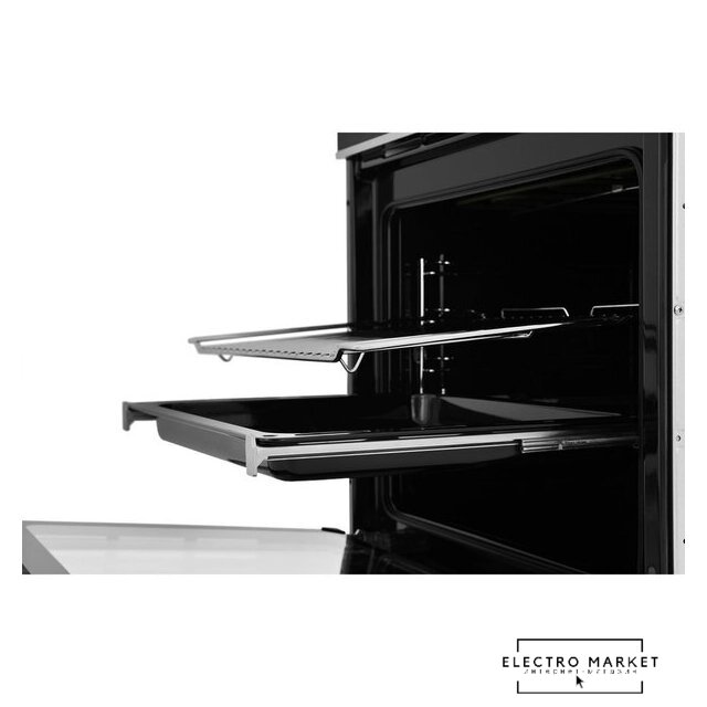 электрический с конвекцией, приготовление на пару, объем 77 л, утапливаемые переключатели, 12 режимов, очистка паровая, 2 стекла в дверце, направляющие проволочные + телескопические
