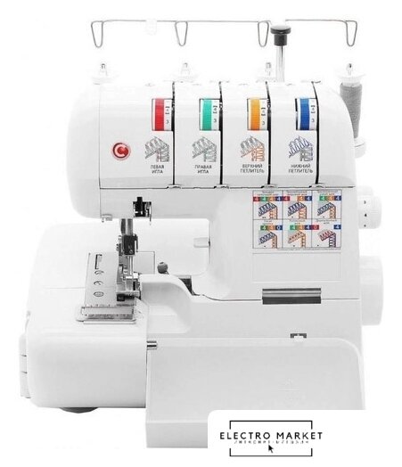 оверлок, рабочих нитей: 2, 3, 4, максимальная ширина строчки: 6.5 мм, максимальная длина строчки: 5 мм, регулировка давления лапки, скорость шитья: 1200 об/мин