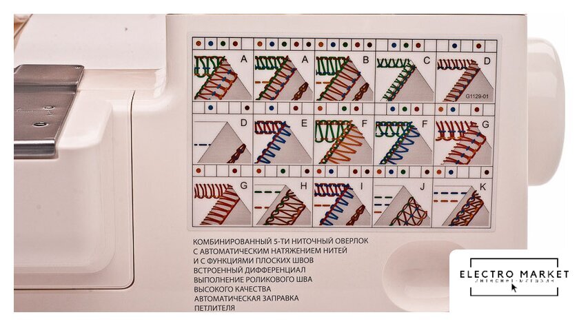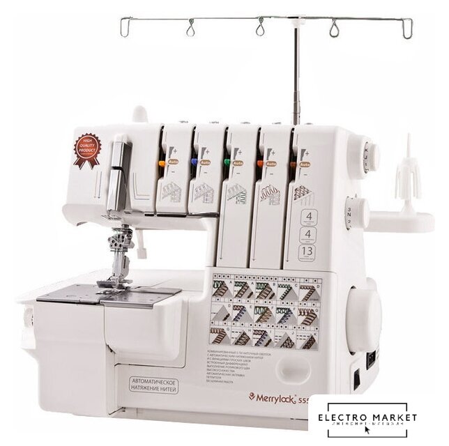 оверлок, рабочих нитей: 5, максимальная ширина строчки: 5 мм, максимальная длина строчки: 4.6 мм, скорость шитья: 5500 об/мин