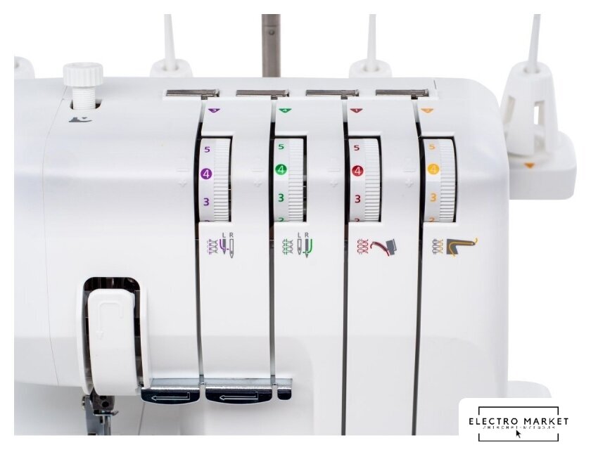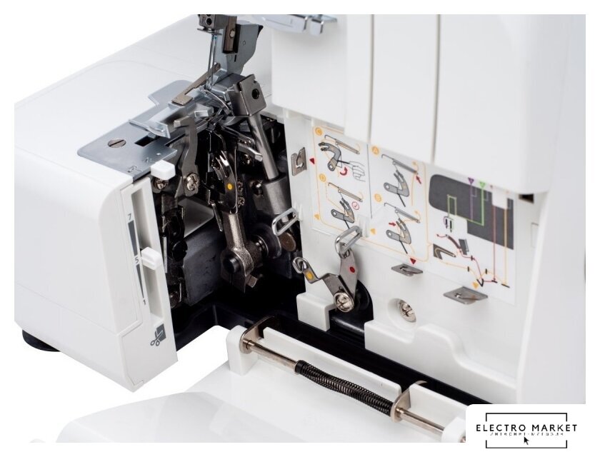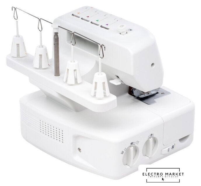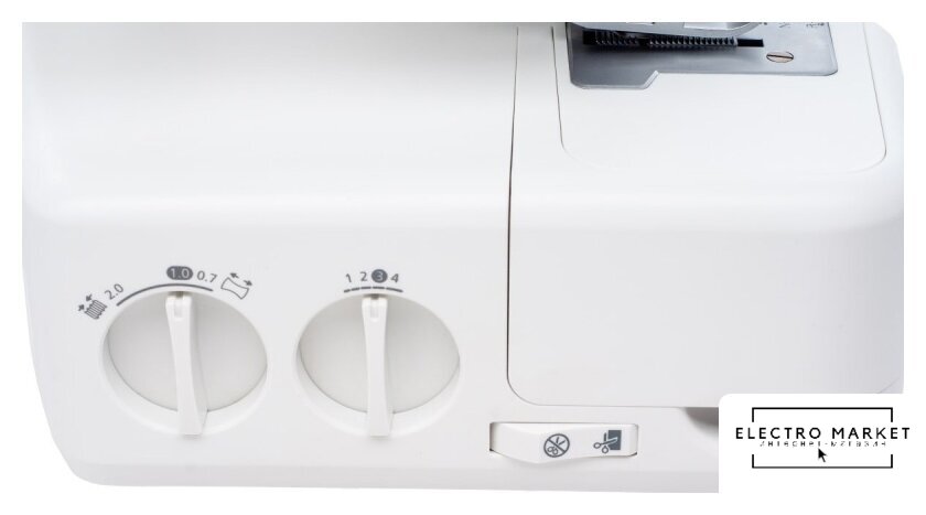 оверлок; рабочих нитей: 2, 3, 4; максимальная ширина строчки: 7 мм; максимальная длина строчки: 4 мм; регулировка давления лапки; скорость шитья: 1300 об/мин
