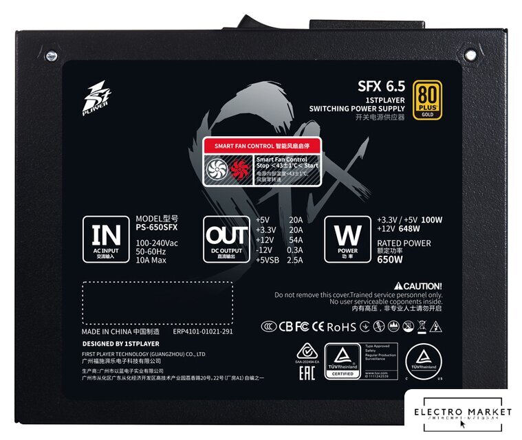 SFX 700 Вт, активная PFC, золотой сертификат, вентилятор 1x80 мм, модульные кабели, 1x 12В 58А, 1x PCIe Gen5