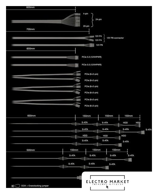 ATX 1050 Вт, активная PFC, платиновый сертификат, вентилятор 1x140 мм, модульные кабели, 1x 12В 83.3А