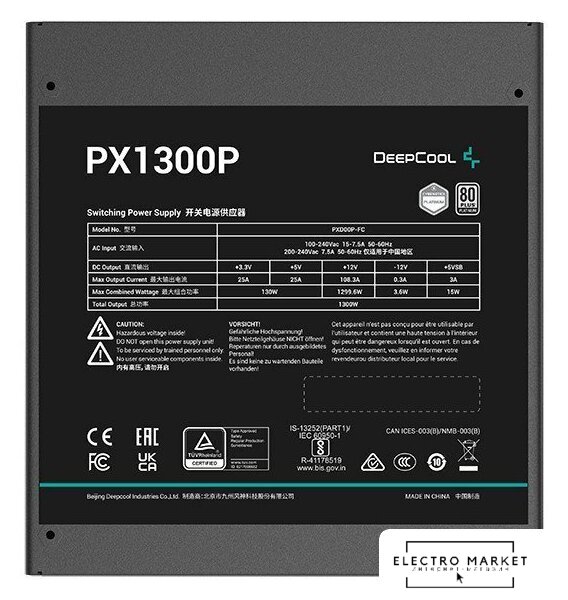 ATX 1300 Вт, активная PFC, золотой сертификат, вентилятор 1x140 мм, модульные кабели, 1x 12В 108.3А, 1x PCIe Gen5
