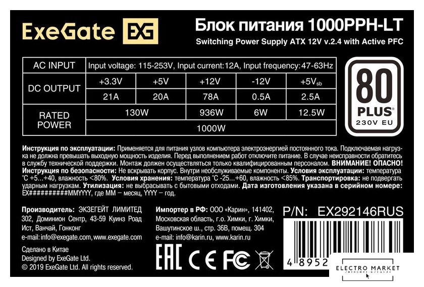 Изготовитель: Эксегейт ЛТД. 4210, Офис Тауэр, Конвеншн Плаза, 1 Харбор Роуд, Ванчай, Гонконг