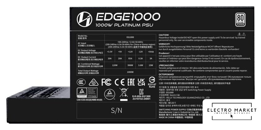 ATX 1200 Вт, активная PFC, золотой сертификат, вентилятор 1x135 мм, модульные кабели, 1x 12В 100А, 1x PCIe Gen5
