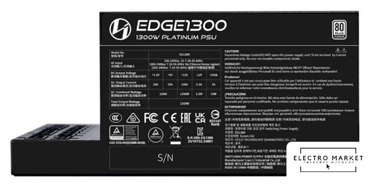 ATX 1300 Вт, активная PFC, платиновый сертификат, вентилятор 1x120 мм, модульные кабели, 1x 12В 108А, 1x PCIe Gen5
