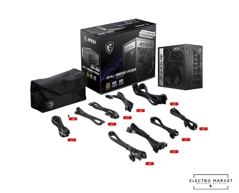 ATX 850 Вт, активная PFC, платиновый сертификат, вентилятор 1x120 мм, модульные кабели, 1x 12В 70.8А, 1x PCIe Gen5