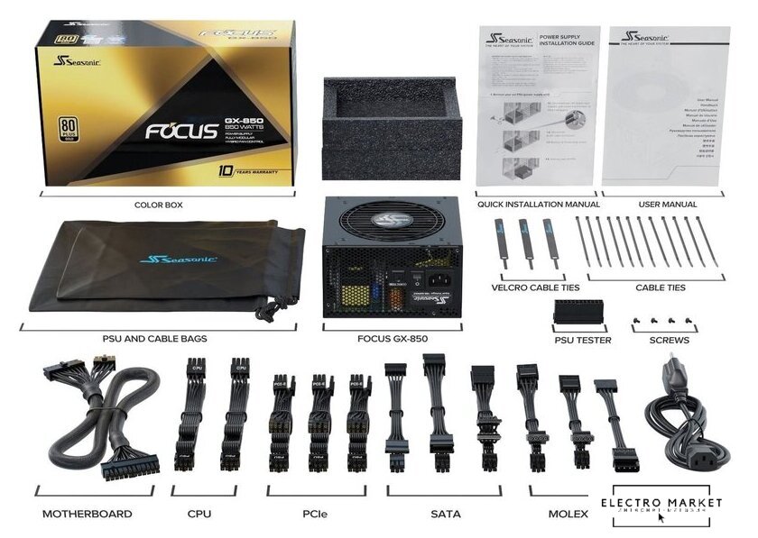 ATX 850 Вт, активная PFC, золотой сертификат, вентилятор 1x135 мм, модульные кабели, 1x 12В 70.8А