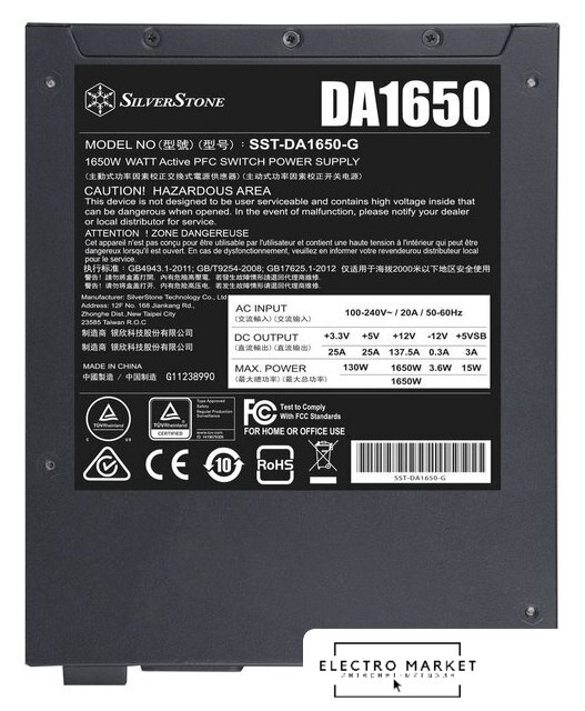 | Комбинированная нагрузка по +12V | 1650 Вт |