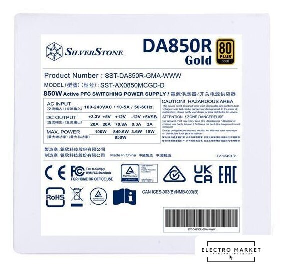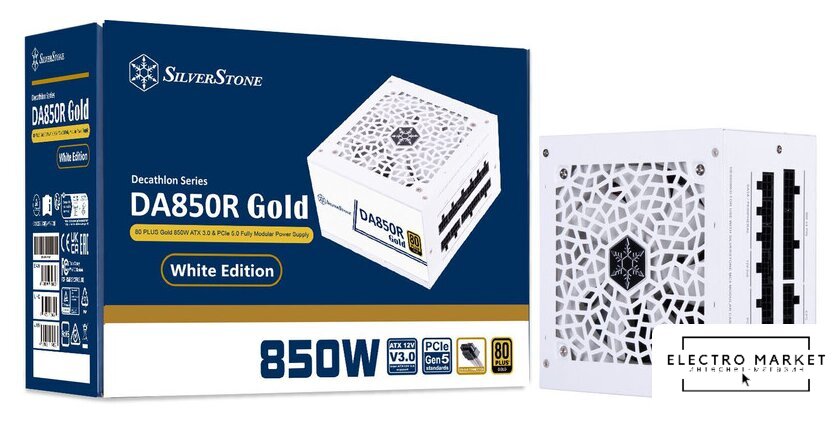 ATX 850 Вт, активная PFC, золотой сертификат, вентилятор 1x120 мм, модульные кабели, 1x 12В 70.8А, 1x PCIe Gen5